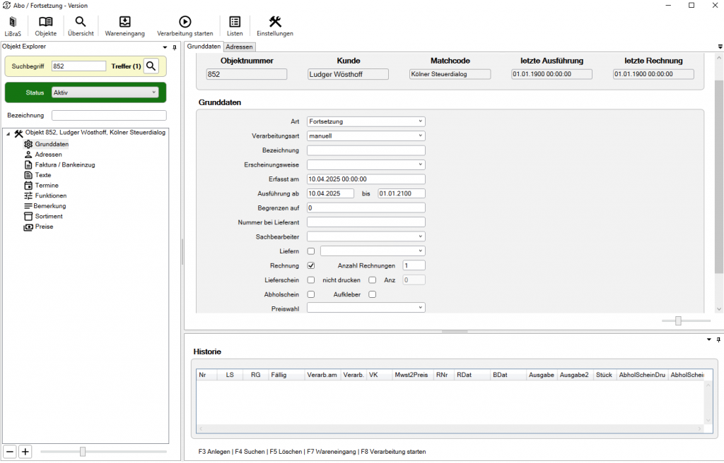 Abonnements oder Fortsetzungen werden in LiBraS über die entsprechende Schaltfläche in der Symbolleiste oder über das Hauptmenü aufgerufen.