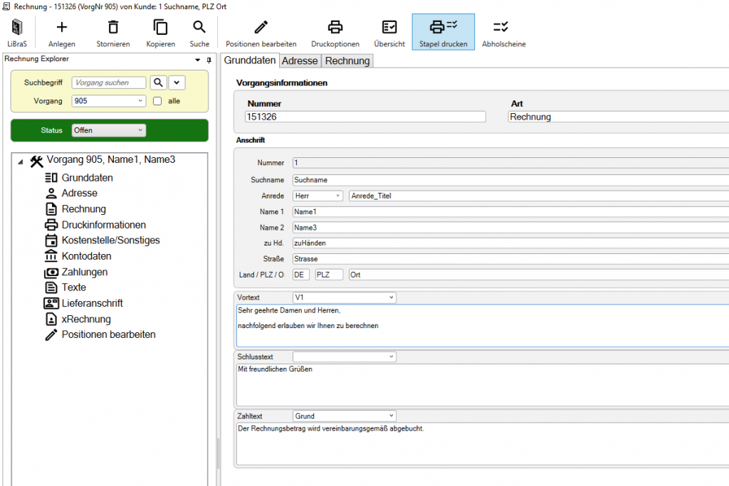Rufen Sie das Rechnungsmodul auf.