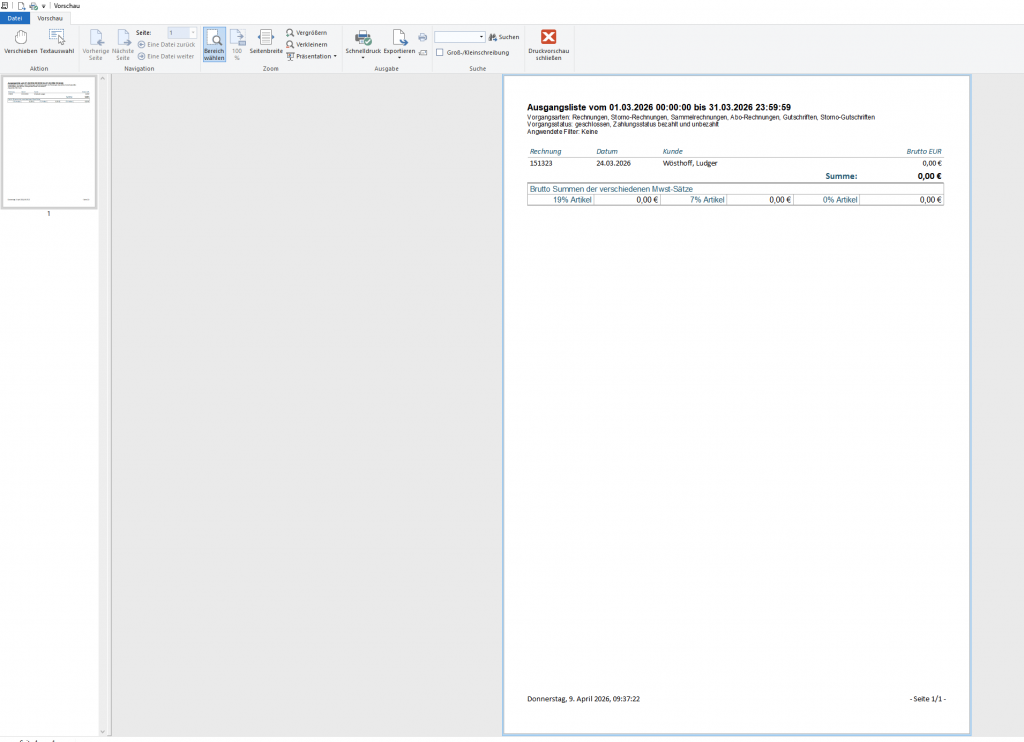 Die Rechnungsausgangsliste können Sie im Rechnungsmodul erzeugen.